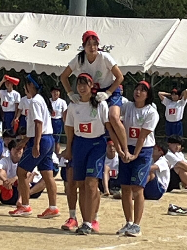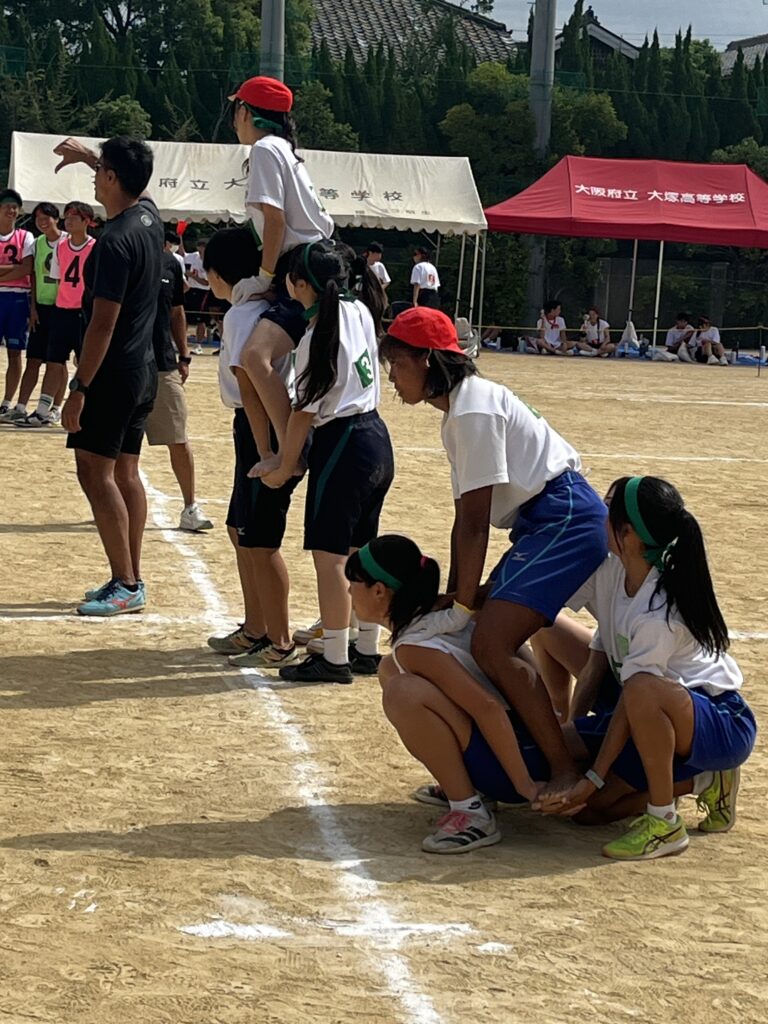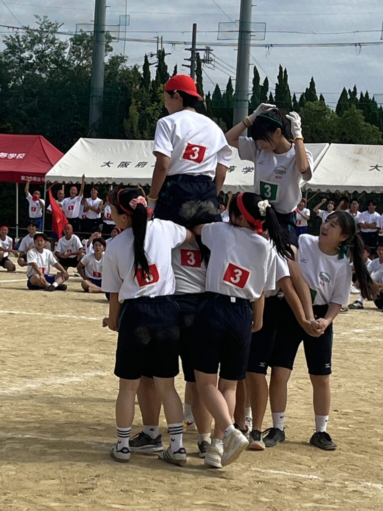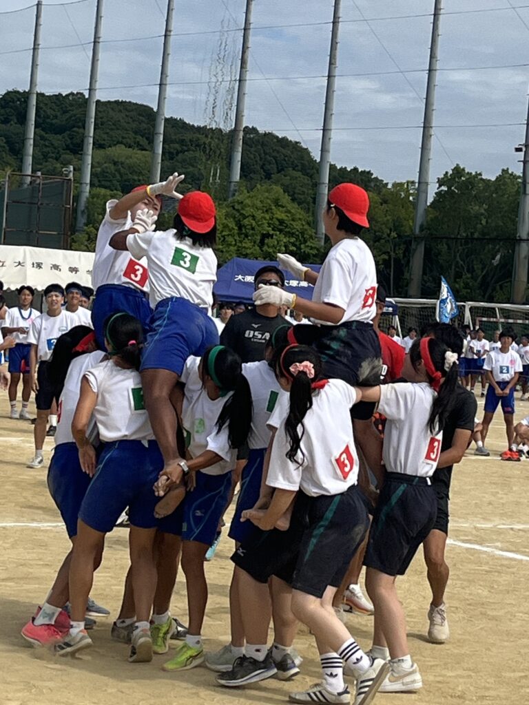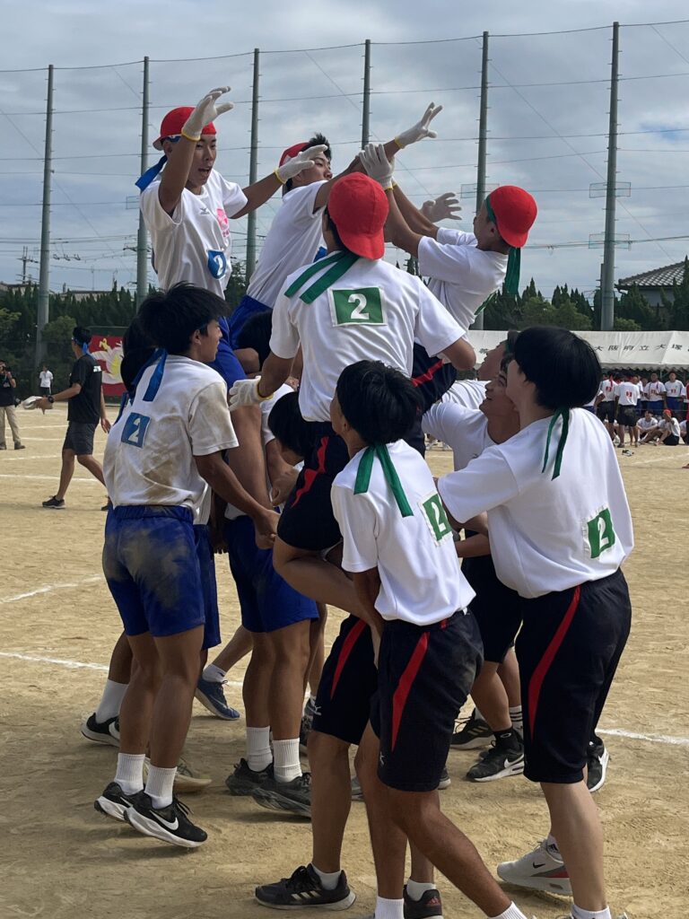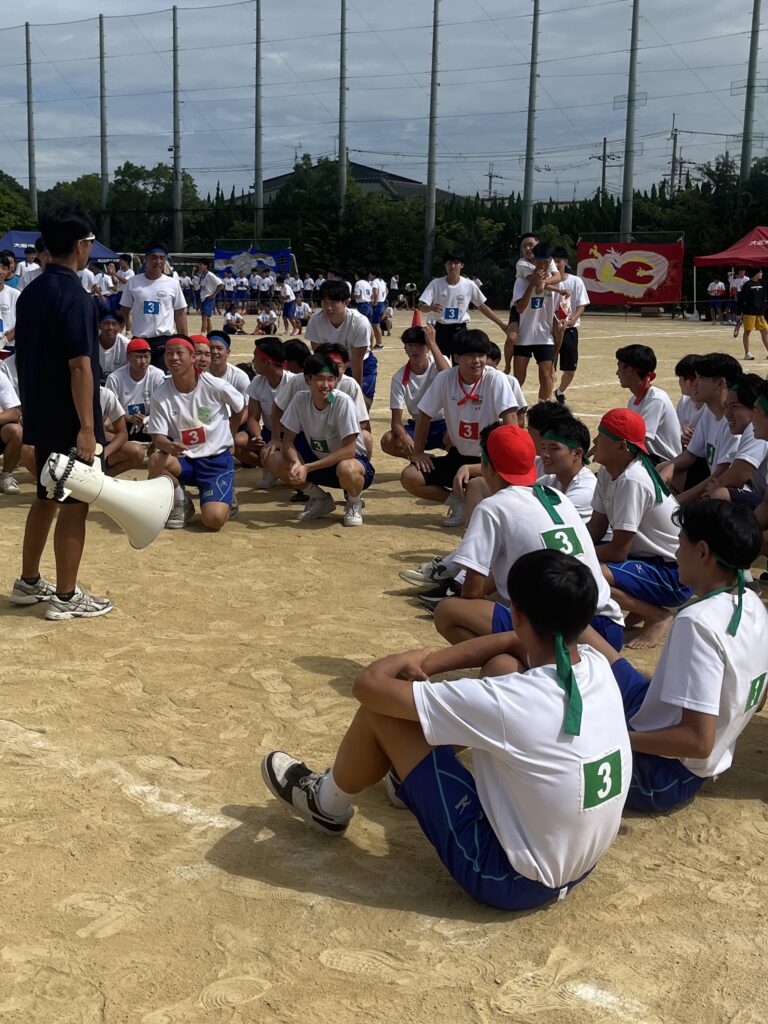 大塚際(体育の部) パート4 徐々にグランドも熱気を帯び、いい感じに盛り上がってきました! 次の種目はプログラムNo.6「騎馬戦」、そしてプログラムNo.7の「スウェーデンリレー」です。騎馬戦は見ごたえ十分。すごい迫力です。なので3年生男子の騎馬戦では、あまり過激にならないように競技の前に集めて注意、少し間をとり落ち着かせてから競技を開始しました! スウェーデンリレーは1走が100m、2走が200m、3走が300m、4走が400mと走る距離が伸びていくハードな種目となっています!