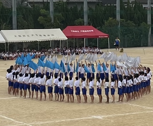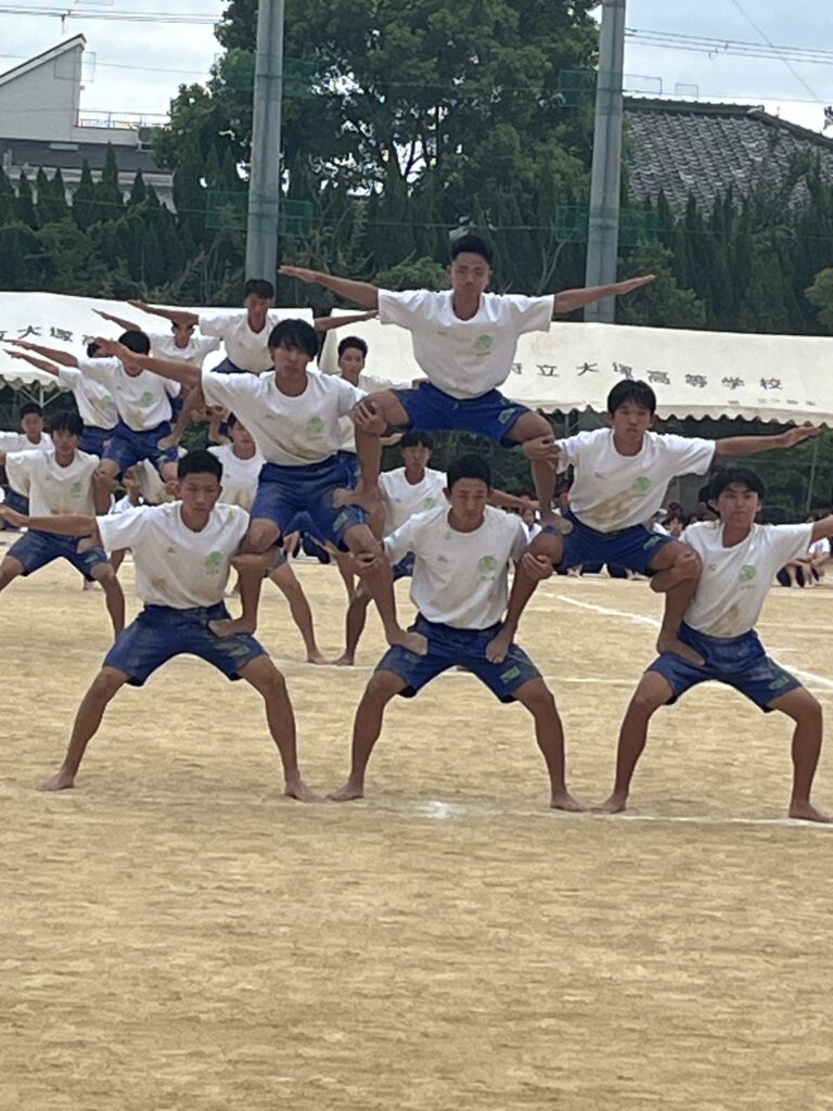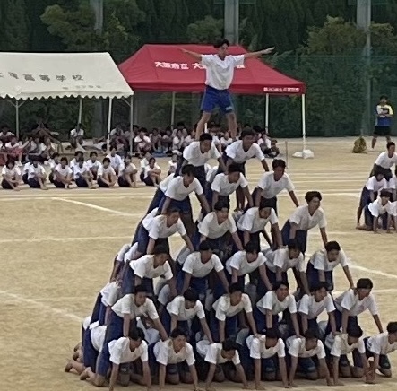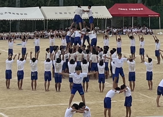 大塚祭(体育の部) パート6 午後からのプログラム、スタートは各団の応援合戦! そして体育科によるマスゲーム! 応援合戦は赤・青・緑、それぞれの団が趣向を凝らした応援を気持ちを一つにして繰り広げました! そして体育科全生徒によるマスゲーム。女子の旗を使いながら見せるしなやかな演技やダンスと男子の力強い組体操。最後は男女一緒になっての迫力ある演技! 見ごたえ十分! 凄いです!