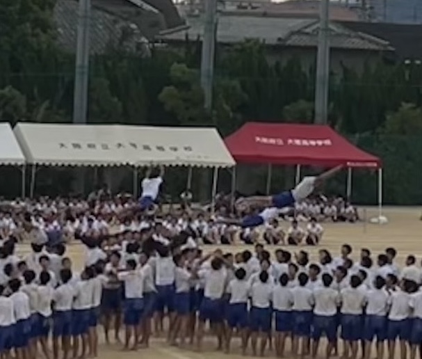 大塚祭(体育の部) パート6 午後からのプログラム、スタートは各団の応援合戦! そして体育科によるマスゲーム! 応援合戦は赤・青・緑、それぞれの団が趣向を凝らした応援を気持ちを一つにして繰り広げました! そして体育科全生徒によるマスゲーム。女子の旗を使いながら見せるしなやかな演技やダンスと男子の力強い組体操。最後は男女一緒になっての迫力ある演技! 見ごたえ十分! 凄いです! 投稿ナビゲーション 大塚祭(体育の部) パート5大塚祭(体育の部) パート7
