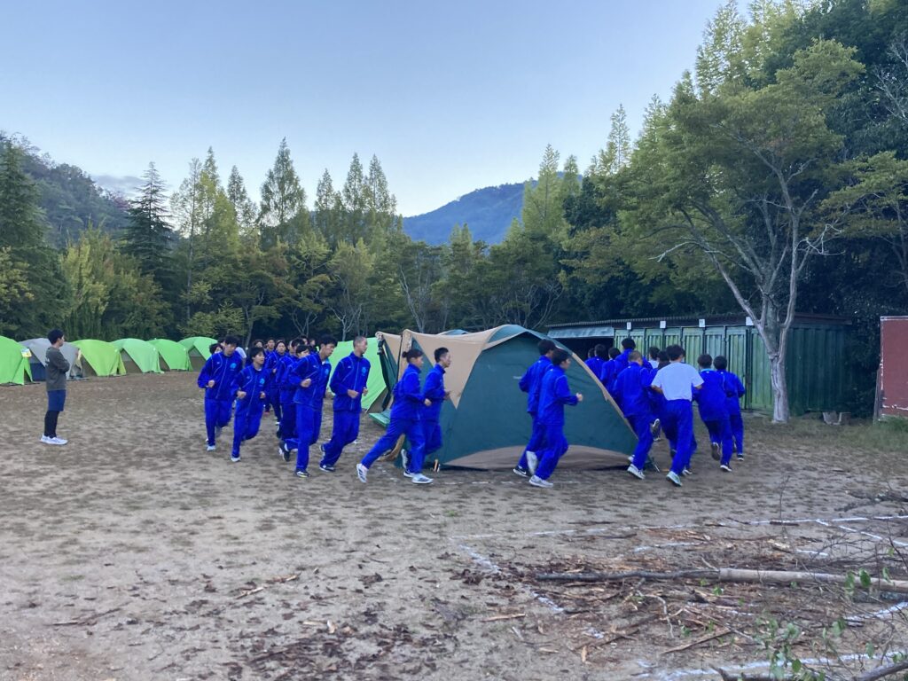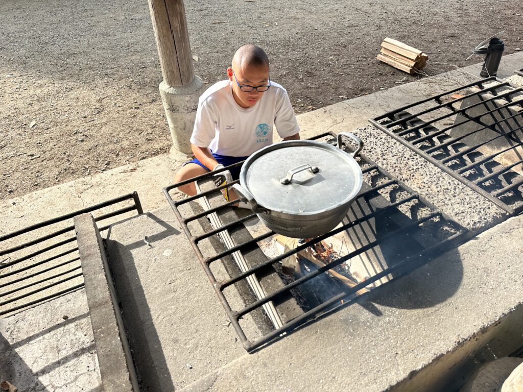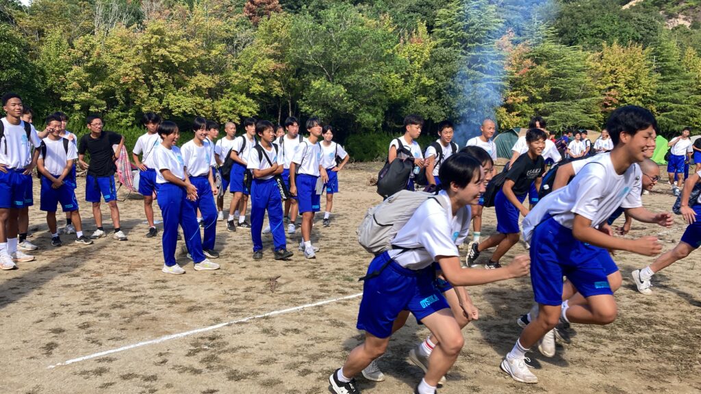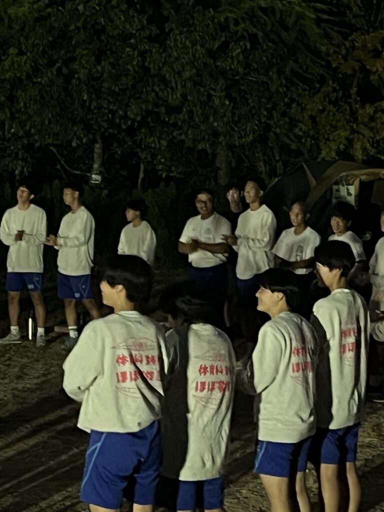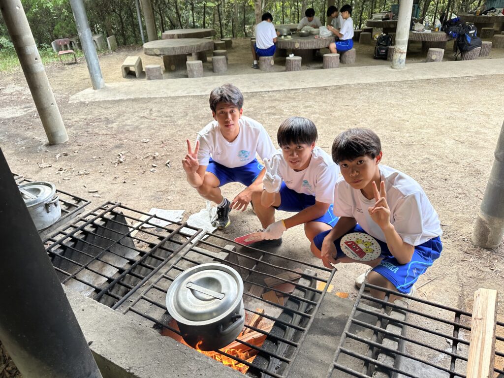 キャンプ実習② キャンプ実習2日目。朝食(焼きそばパン)のあと、和泉葛城山ハイキング! 山頂では大塚高校の食堂が用意してくれたお弁当を食べてクラス写真♪ 夕食はカレー。水の量がポイントです♪ 具材にもしっかり火を通して♪ 夜はキャンプファイヤー! 各班、趣向を凝らしたスタンツを披露♪ 指導員として大阪体育大学の学生さんにも来ていただき、楽しい夜となりました! 投稿ナビゲーション キャンプ実習①キャンプ実習③