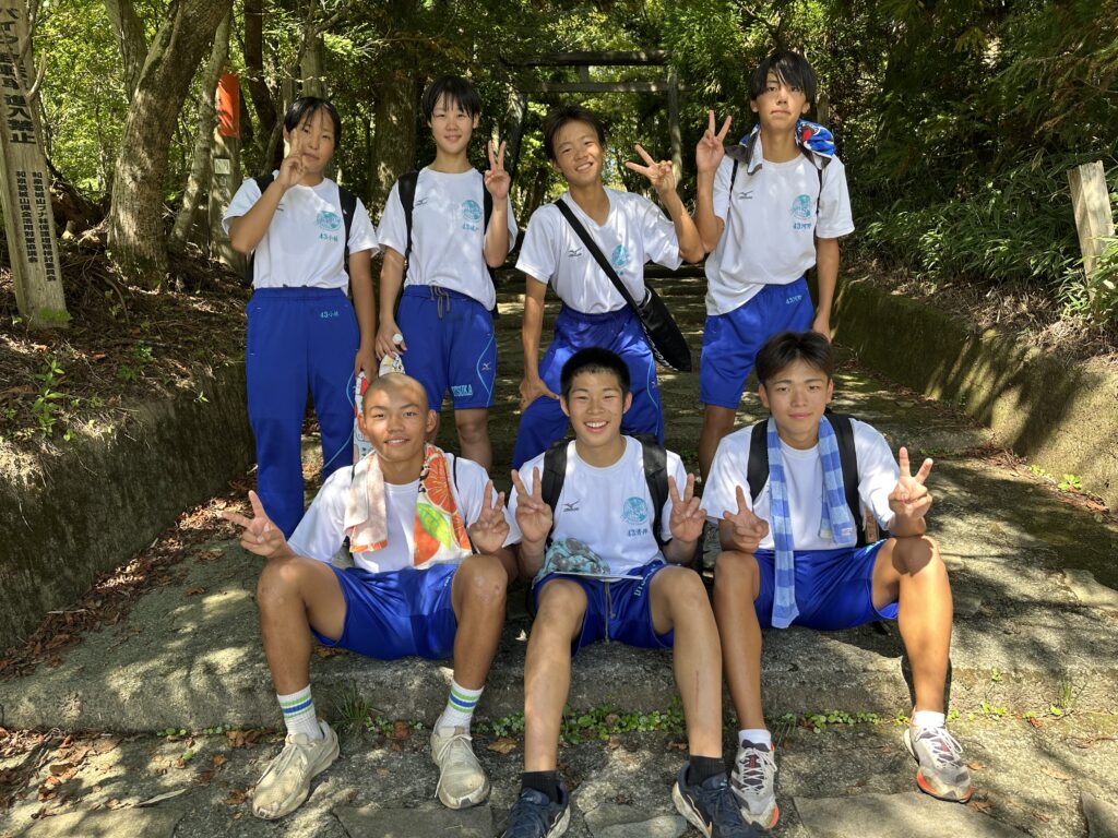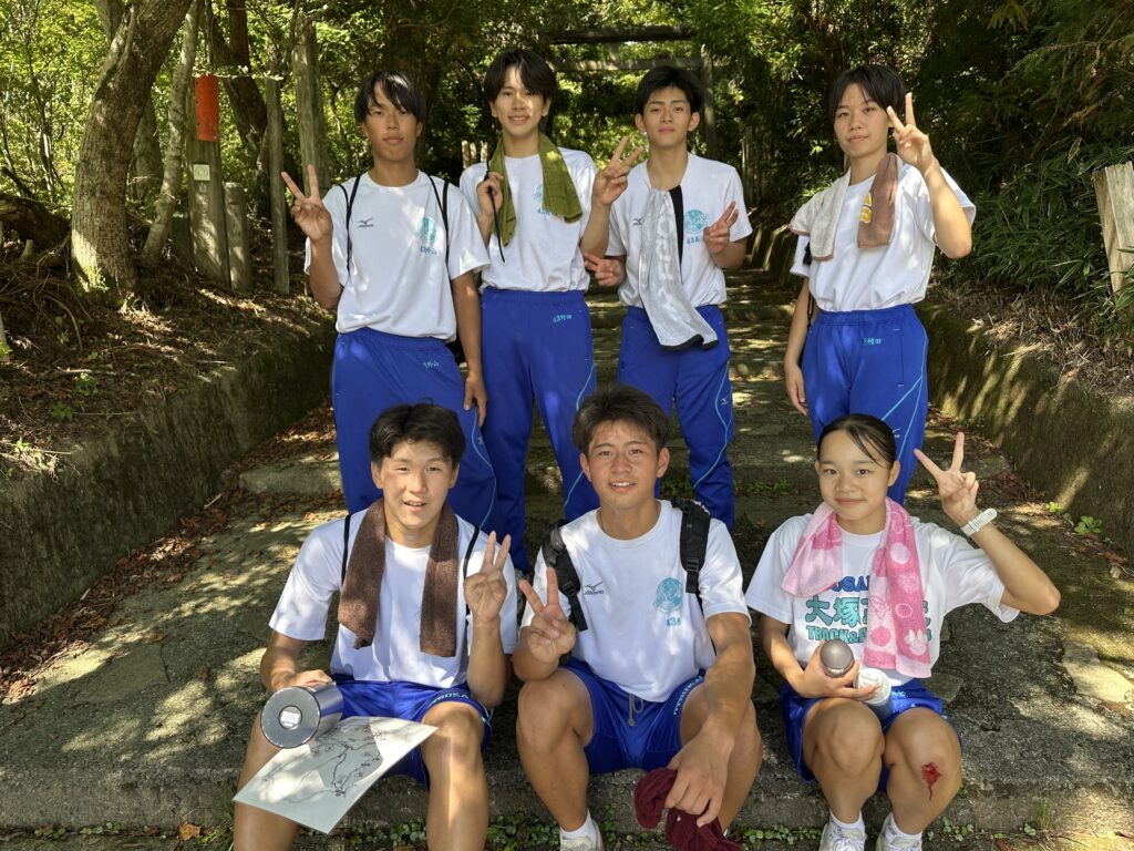 キャンプ実習② キャンプ実習2日目。朝食(焼きそばパン)のあと、和泉葛城山ハイキング! 山頂では大塚高校の食堂が用意してくれたお弁当を食べてクラス写真♪ 夕食はカレー。水の量がポイントです♪ 具材にもしっかり火を通して♪ 夜はキャンプファイヤー! 各班、趣向を凝らしたスタンツを披露♪ 指導員として大阪体育大学の学生さんにも来ていただき、楽しい夜となりました!
