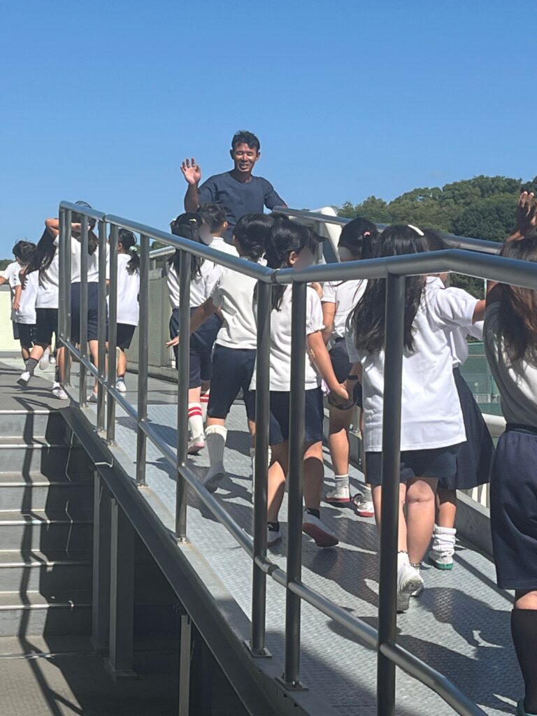 小学校の子どもたちが訪ねてきました! 10月9日(木)、松原東小学校の2年生の子どもたちが本校を訪問してくれました! 食堂に集合して教頭先生がご挨拶、みんなで校内を探検! 大きくて広い校舎や体育館にびっくり、図書室の大きさと本の多さに大興奮! 一通り見学した後、食堂に戻って「質問タイム」♪ 子どもたちの好奇心できらきら光る眼と楽しそうな笑顔に癒され、こちらもいつの間にか笑顔に… 楽しいひと時でした。 10年後、みんなを待っているよ!