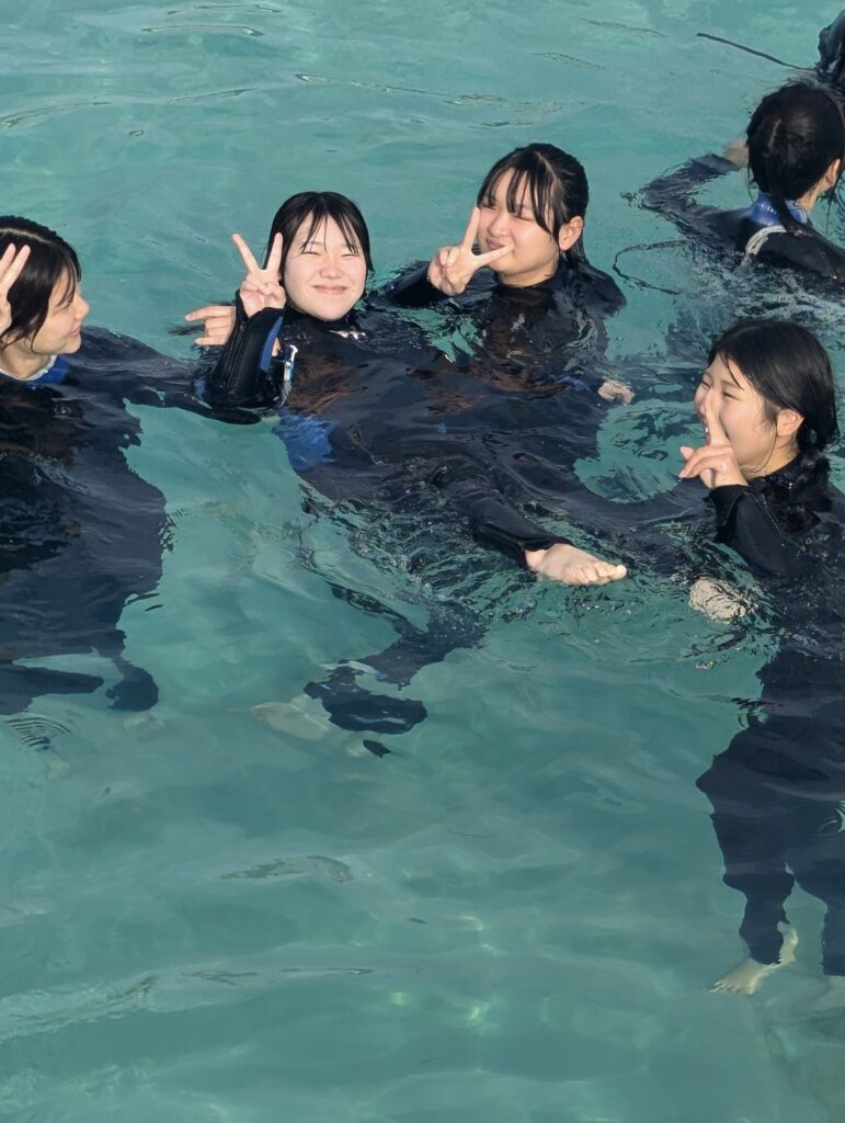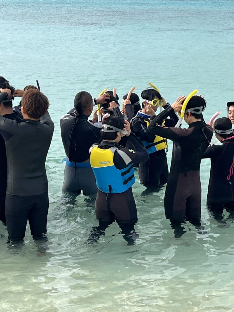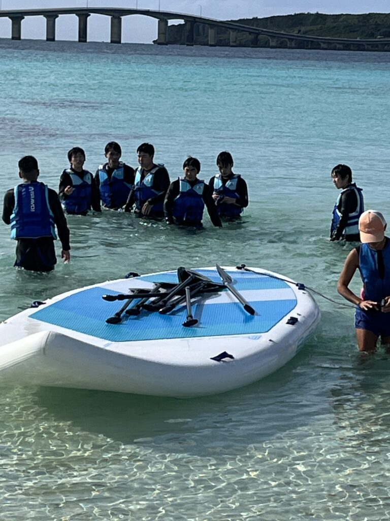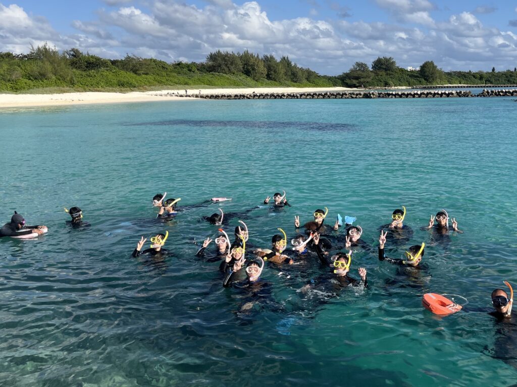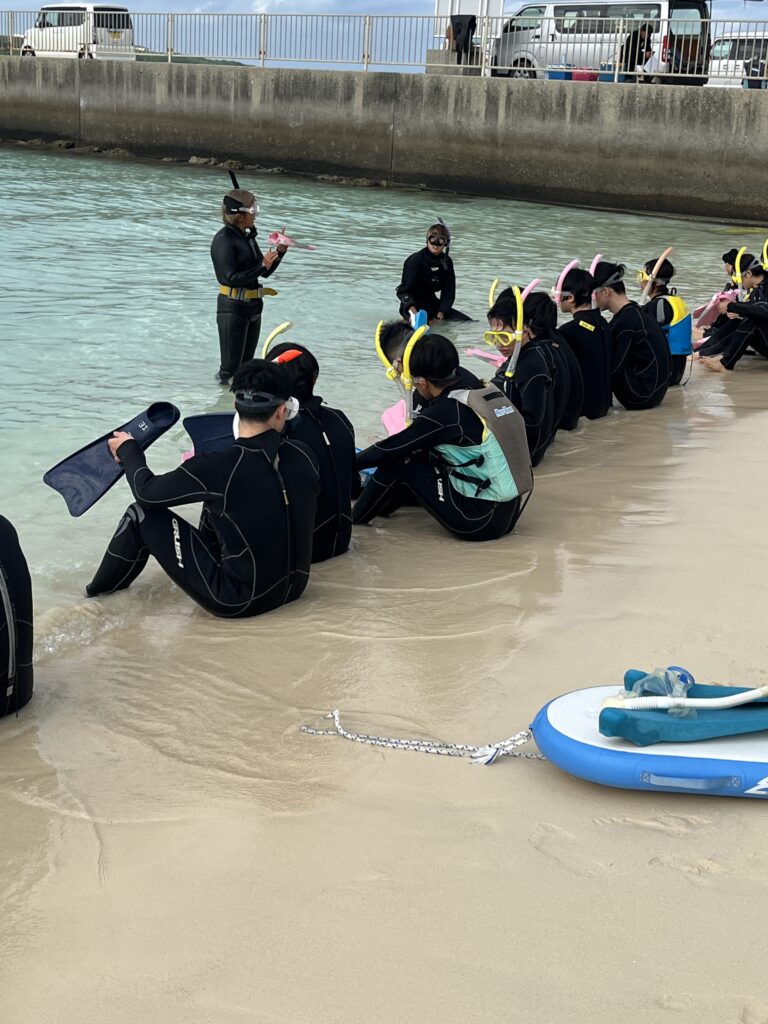 修学旅行2日目はマリン体験・文化体験の選択体験♪ 夕方には民泊体験の入村式です。日ごとに天気は回復し、本当にため息の出るような美しい海の中、生徒たちは自分たちの選んだ体験をたっぷり楽しみました! その後17時からJTAドームにて民泊体験の入村式。受け入れてくださる民家の皆さんとの対面にちょっぴり緊張気味の生徒たち。どんな体験ができるのか楽しみです。