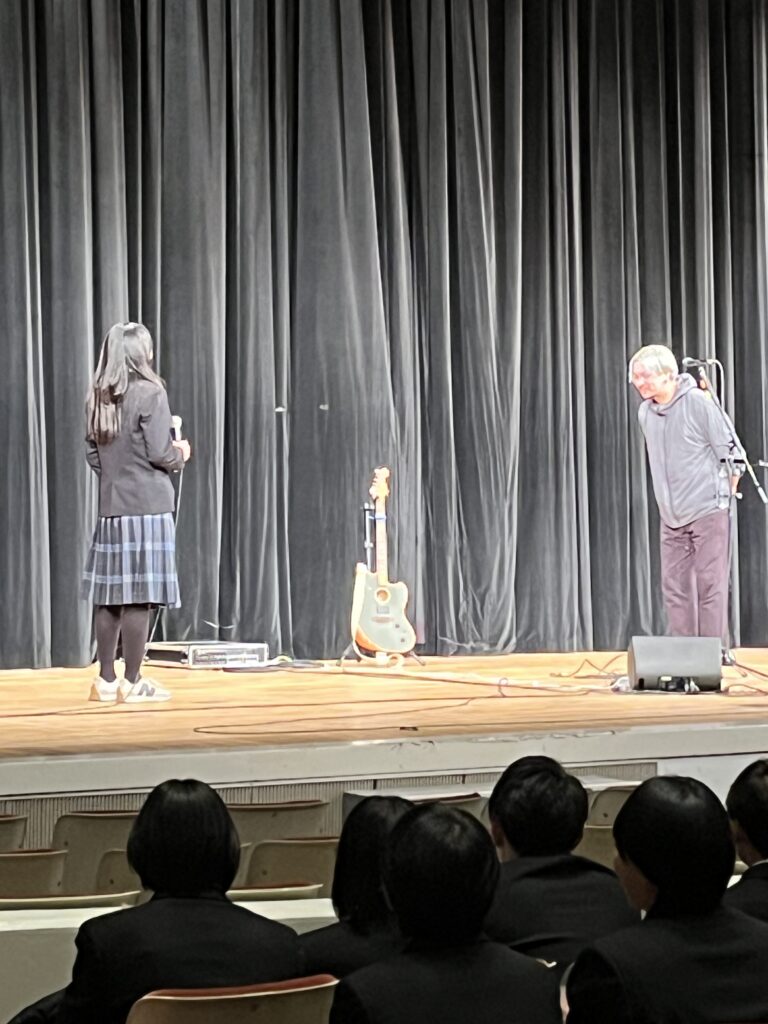 12月10日(水)、藤井寺のパープルホールで人権学習を行いました。 講師にライブバンド 「FUNKIST」 のボーカル、染谷西郷さんをお招きして、ご自身の経験も踏まえて、差別と人権、国際問題について、音楽を通じた講演を行っていただきました♪ 魂のこもった熱いメッセージと歌で会場は大盛り上がり! また、サッカーワールドカップ南アフリカ大会での突撃ライブの話はとても印象深く、日頃、高校生のサッカーの大会運営に関わっている私としても驚かされました! 染谷西郷さん、ありがとうございました‼