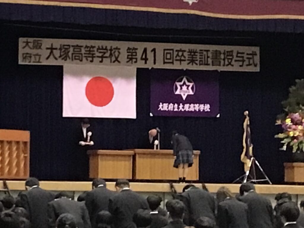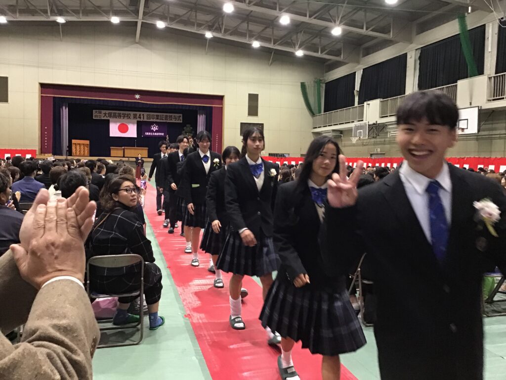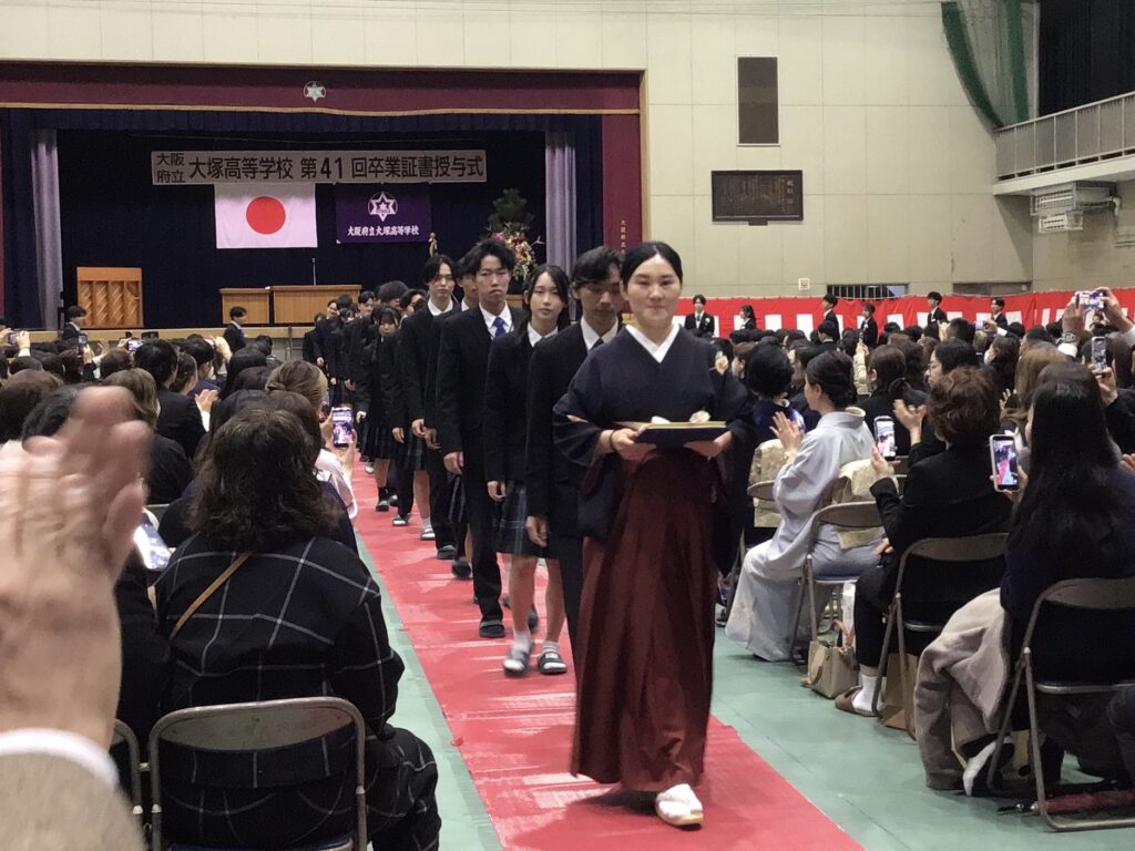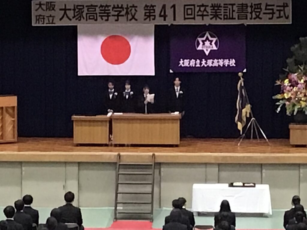3月3日(火)、3年生(41期)の卒業式が行われました。226名の生徒が大塚を巣立っていきました。私にとっては大塚高校の教員として、卒業生を送ってから20年ぶりの卒業式で、大きな声で校歌を歌う生徒たちの姿に、20年前の卒業式の風景が蘇り、涙が溢れました。卒業生のみなさん、これからの人生、いろんなことがあると思いますが、自分に矢印を向け、「置かれたところ」で大きな花を咲かせてください。 41期生の今後の活躍を期待しています!