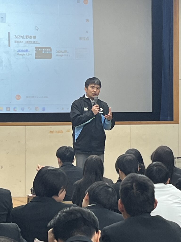 2年生 総合的な探究の時間(修学旅行) 2月12日(火)、2年生(42期)が「総合的な探究の時間」を使って、修学旅行の調べ学習の発表を行いました。この日は事前に各クラスでの発表で選ばれた代表2名が2年生全員の前でプレゼンします♪ どの発表もユニークな発想や独自の着眼点で調べた個性豊かなものばかりでした! 投稿ナビゲーション マラソン大会1年生学年行事