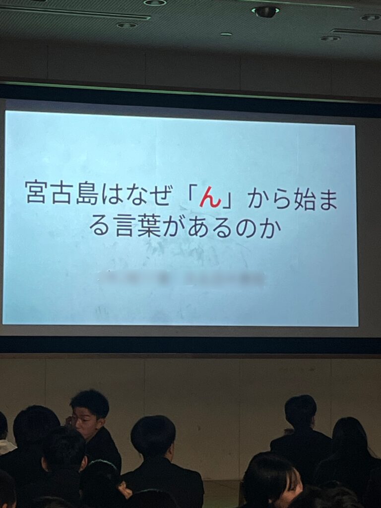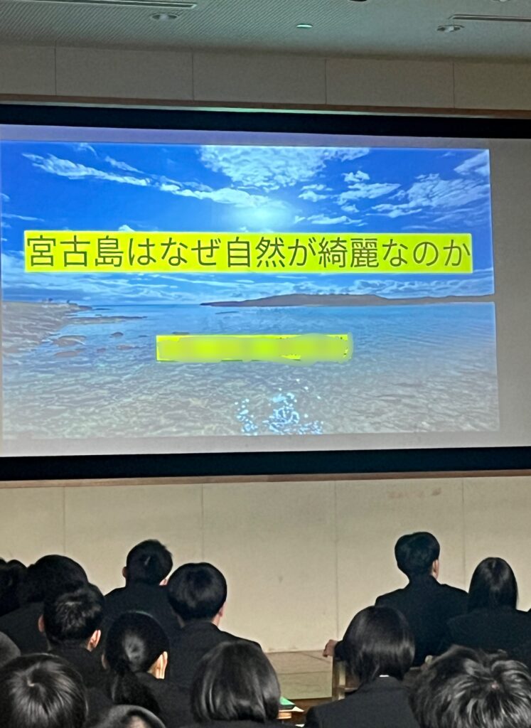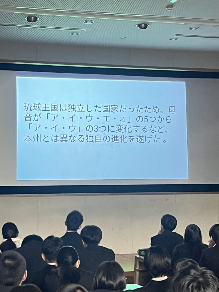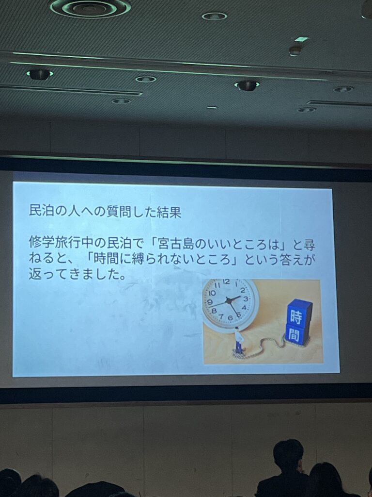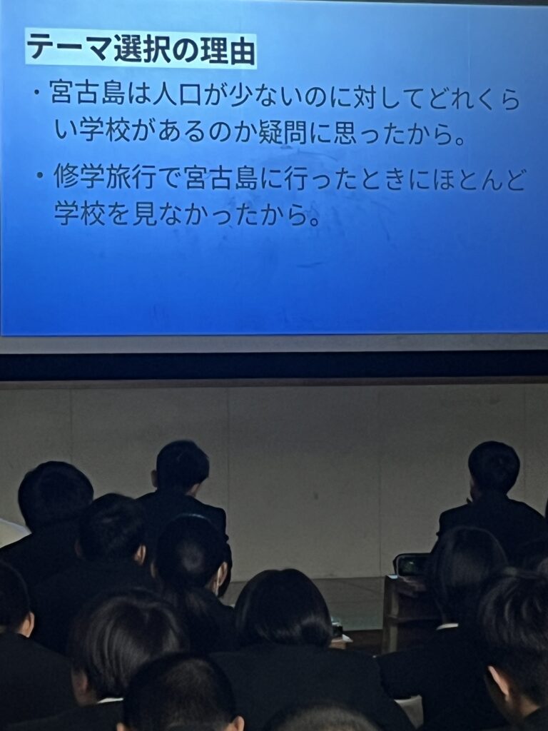 2年生 総合的な探究の時間(修学旅行) 2月12日(火)、2年生(42期)が「総合的な探究の時間」を使って、修学旅行の調べ学習の発表を行いました。この日は事前に各クラスでの発表で選ばれた代表2名が2年生全員の前でプレゼンします♪ どの発表もユニークな発想や独自の着眼点で調べた個性豊かなものばかりでした!